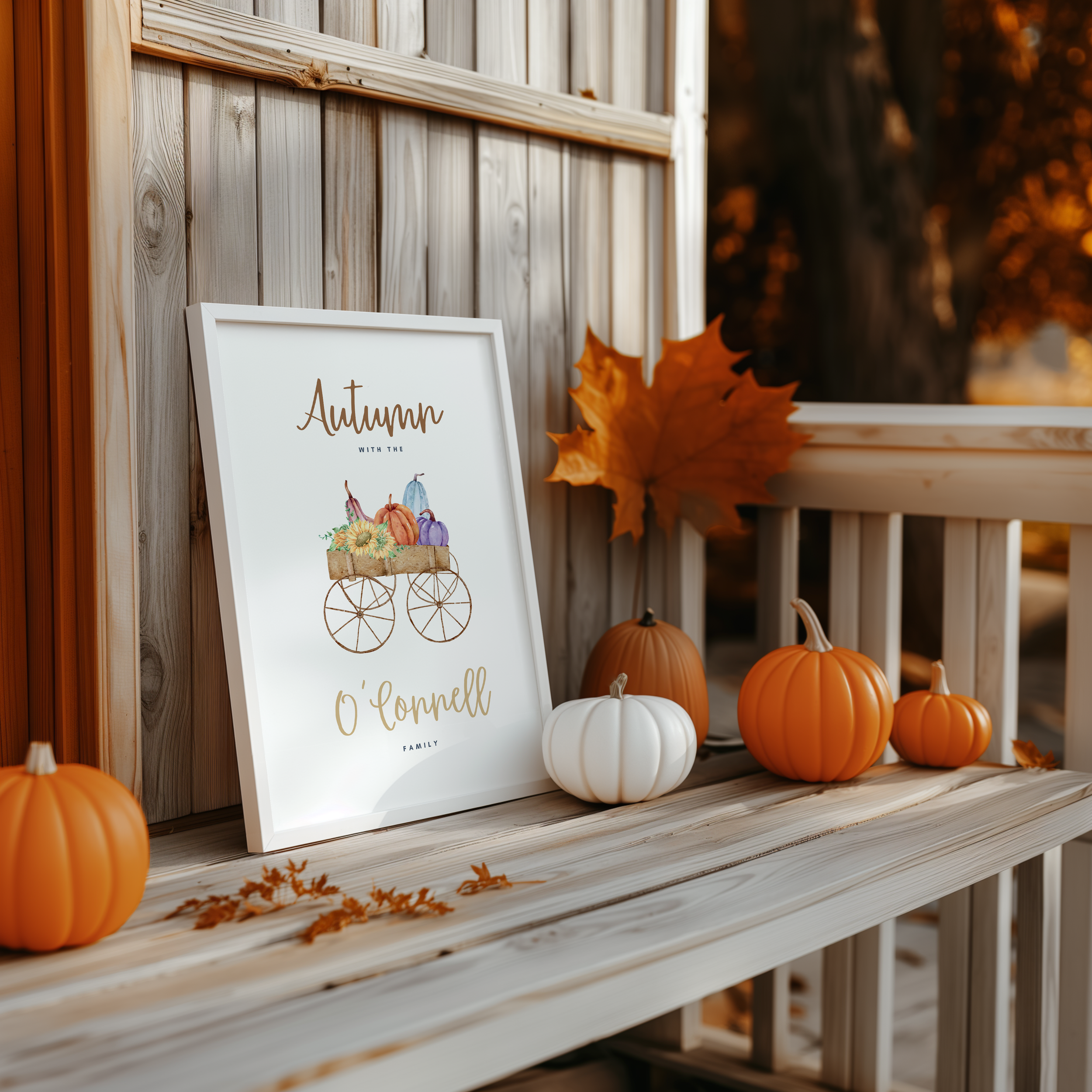 Celebrate the beauty of autumn with our Personalised Family Autumn Print. Featuring warm fall colours this custom print can be personalised with your family name, making it a unique piece for your home décor. Whether it’s for your living room, hallway, or entryway, this print captures the essence of autumn and the love within your family. Perfect as a gift or a keepsake.
